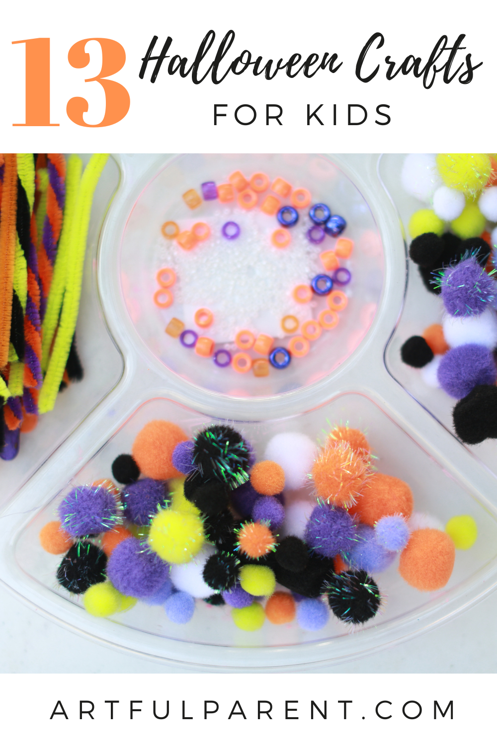 Raised salt painting is an all-time kid favorite. You can do it on black cardstock to make it extra Halloween-y, but it is also great on a white background. Again, use Halloween images to turn this perennial favorite into a Halloween art activity.