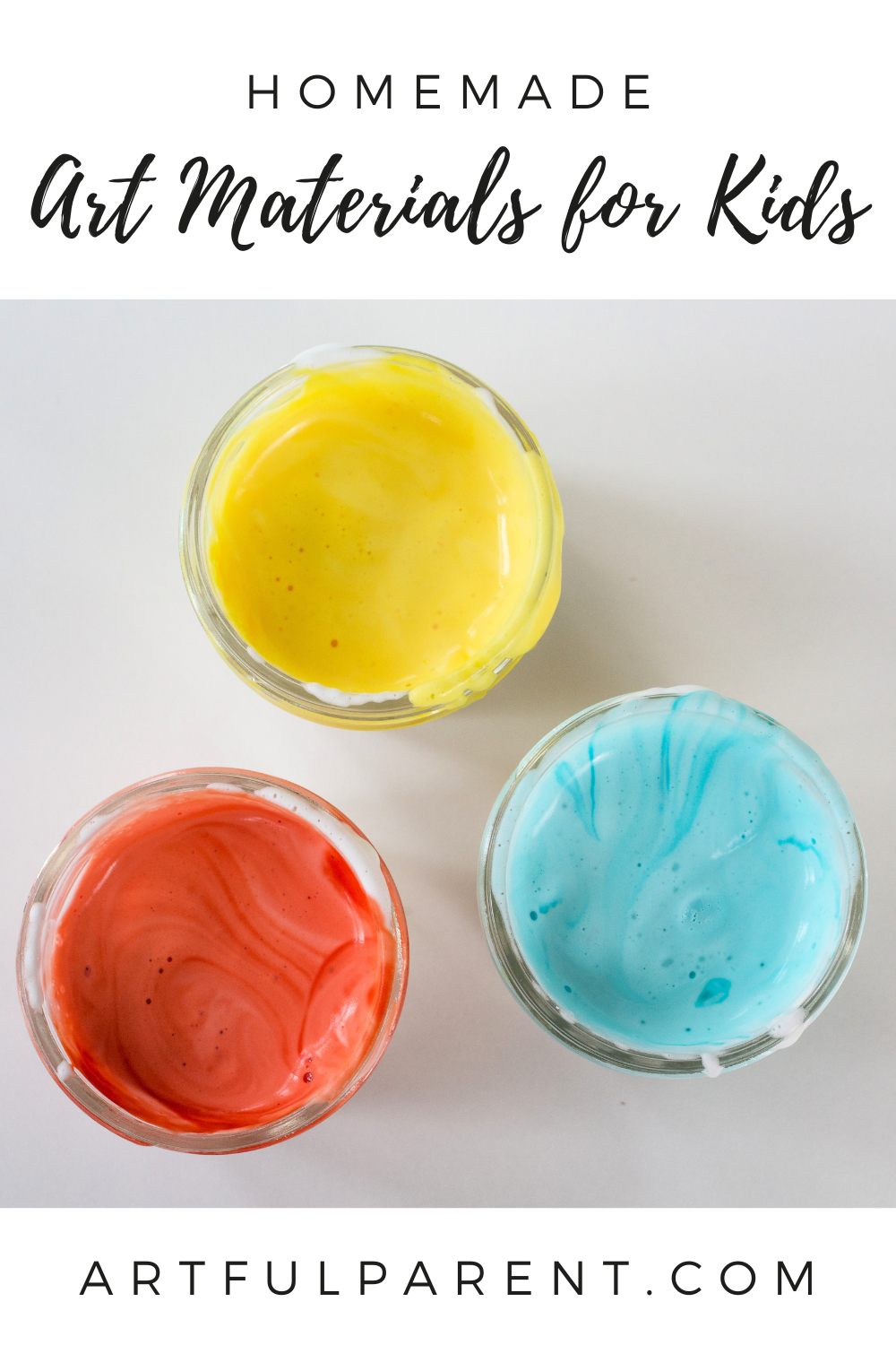 How to make paints for kids using simple, inexpensive kitchen ingredients. Make the paints with your children and then paint together!