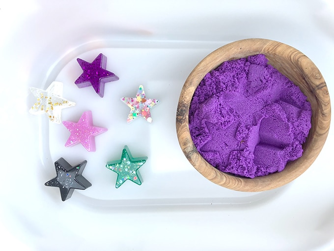 This one caught me by surprise. After buying kinetic sand for my preschooler, I found my toddler asking for it daily for a few weeks straight! It’s fun to play with on its own or add little toys and things to poke in it.