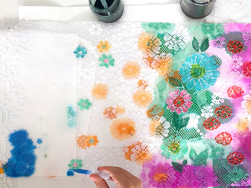 Here’s how to paint lace with kids using liquid watercolors. Then turn the colorful lace into a beautiful wall hanging! Updated November 2024 Today, I