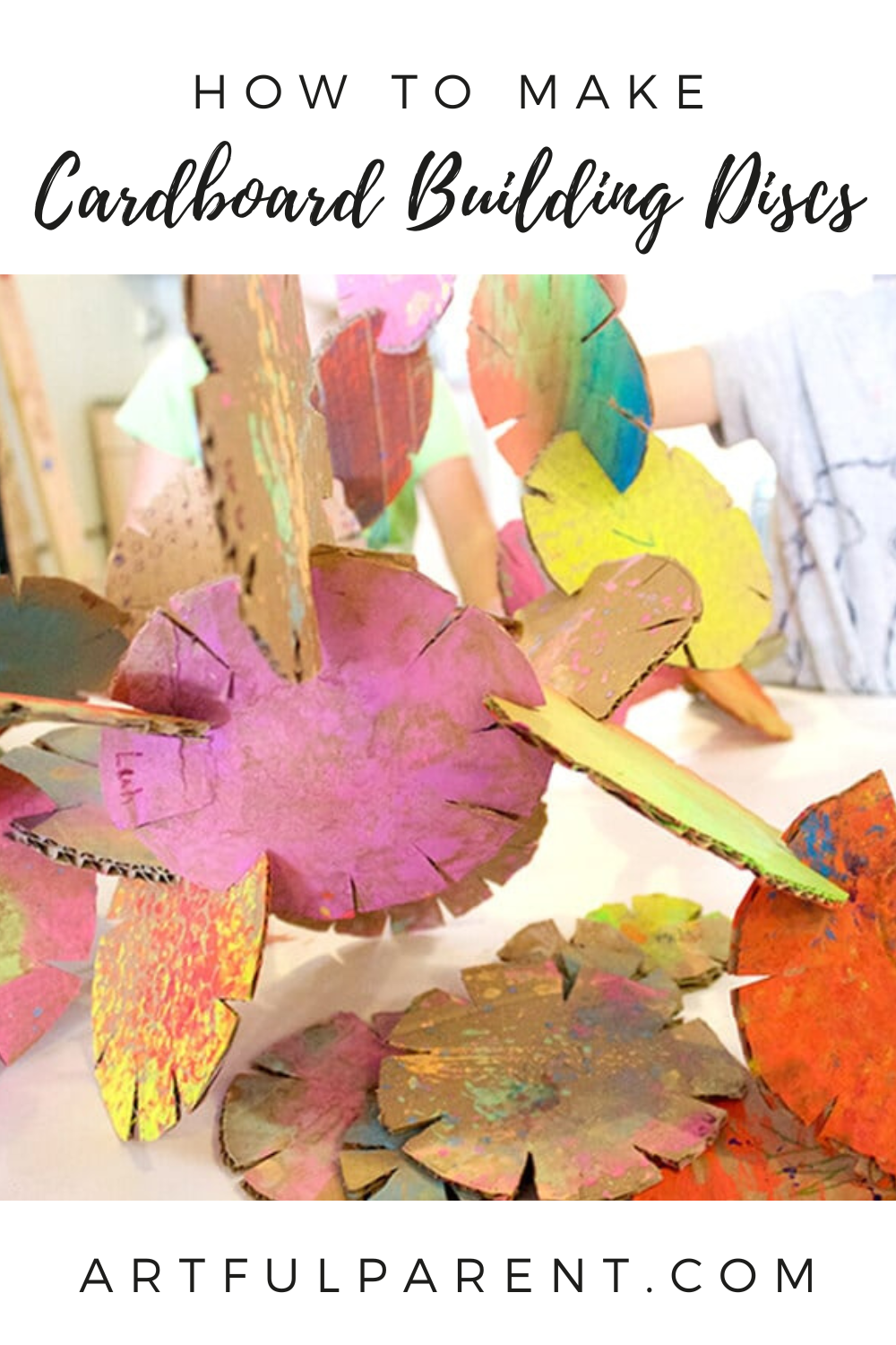 Kids can create their own building material by transforming a box into cardboard building discs. Stack the discs to make these awesome sculptures! Project & post by Samara Caughey of Purple Twig