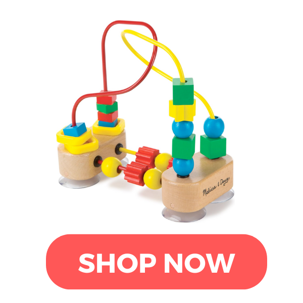A bead maze is a classic toy for a reason. This particular one comes with suction feet that easily stick to your baby’s high chair, which is so convenient. We also love an activity block like this one that has its own bead maze attached!