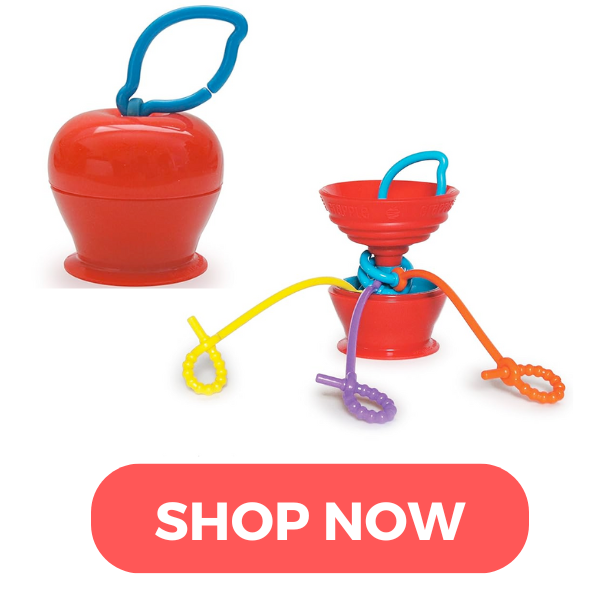 This is the gift mom and dad didn’t know they needed, but will absolutely change their lives! An adorable apple that suctions to a high chair tray- pull out the connectors to clip on a few favorite toys, and you can stop playing the “drop it” game every meal time!