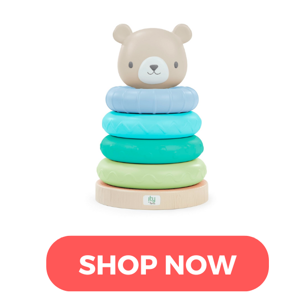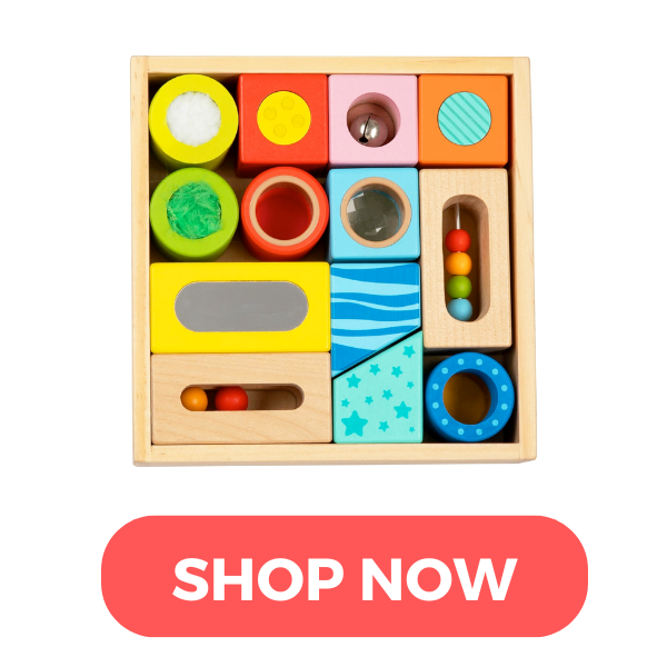 We love this unique set of sensory blocks that’s fun for babies to explore and toddlers to stack!