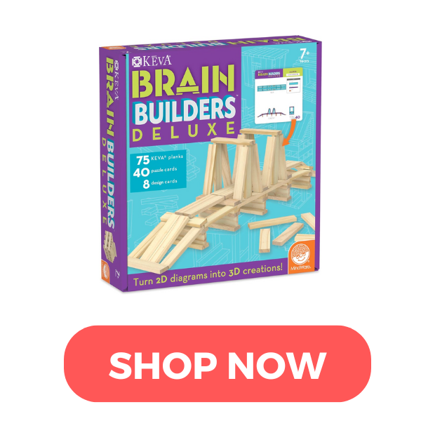 These Keva Planks come with challenges to turn 2-dimensional diagrams into 3-dimensional builds! They are great for open-ended play and construction, too.