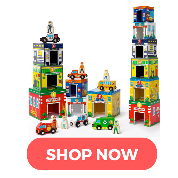We love these nesting city blocks for a huge variety of pretend play. They’re also great for stacking, sorting, lining up… you’ll be amazed at how versatile they can be!