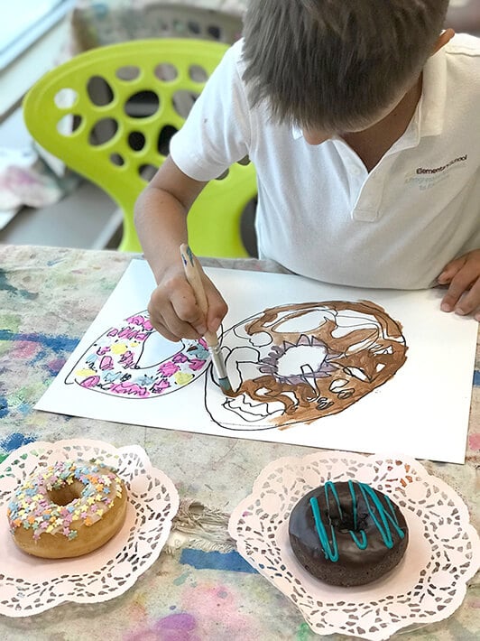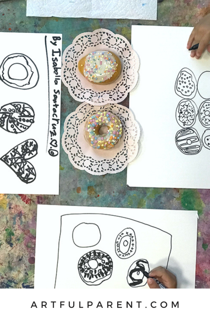 Imagine how excited the children from my after school art class were when I walked into the classroom with a box of fresh donuts. They were like “what??? Do we get to eat these?” And I said, “Even better! You get to draw them!”