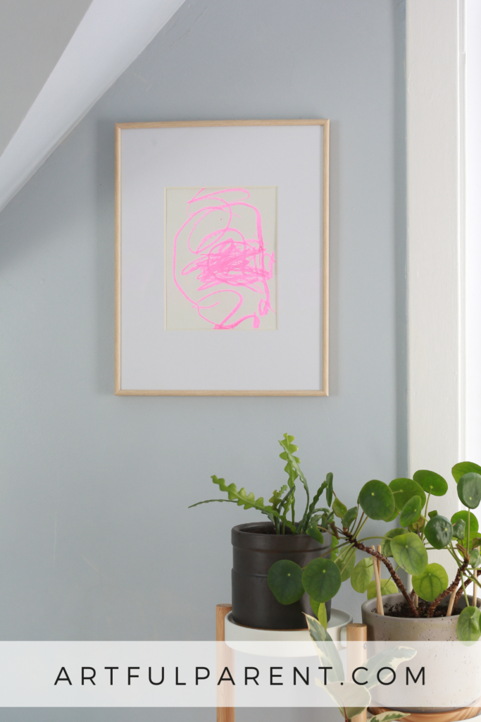 Give your child’s art the star treatment by matting and framing it and hanging it in their room (and around the house). And if it’s an abstract toddler drawing or painting, then it looks super modern!