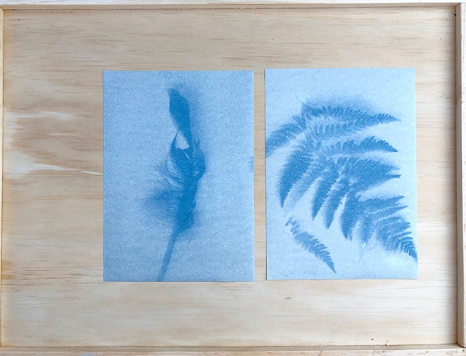 Lay sunprints carefully out on a clean, flat surface. Gently remove any wrinkles and let dry. Then put those sunprints on display because they’re sure to be beautiful!