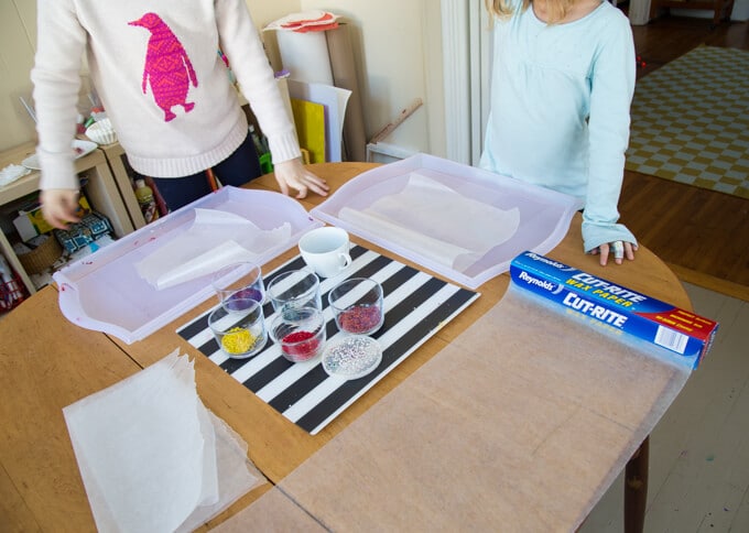 To some of you, this might look like a lot of work and not very fun. But kids LOVE to do this. The crayon grating part of this activity went on for days.