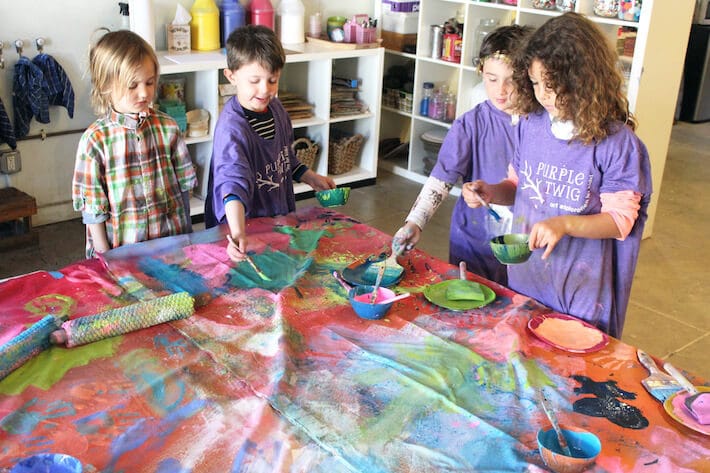 Mural art allows kids the opportunity to work together as they create big, abstract art. A great activity for summer!