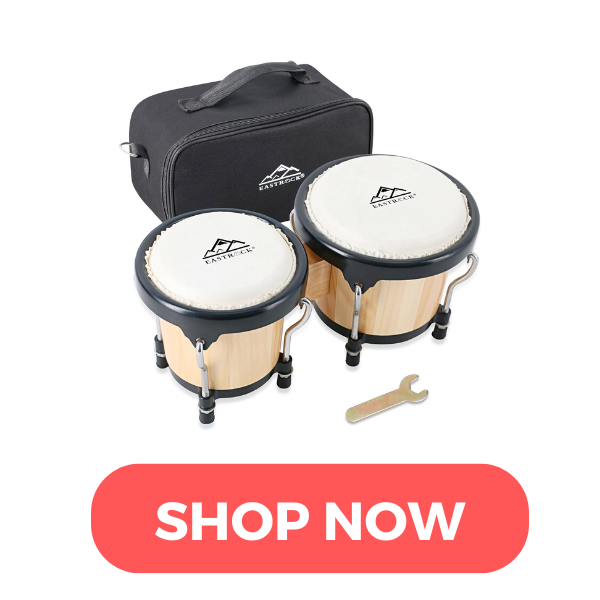 Percussion instruments of all kinds are wonderful for helping kids explore rhythm and develop coordination. Even babies will love pounding on a set of bongos like this!
