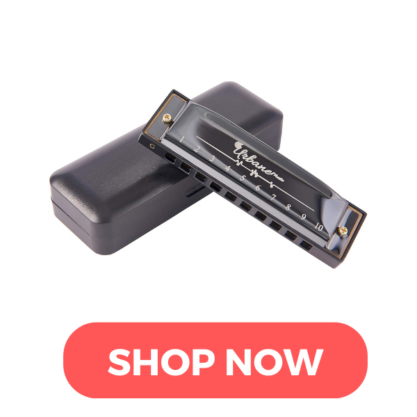 A basic harmonica is another good choice for young kids experimenting with instruments. We love how this one comes with its own sturdy carrying case!
