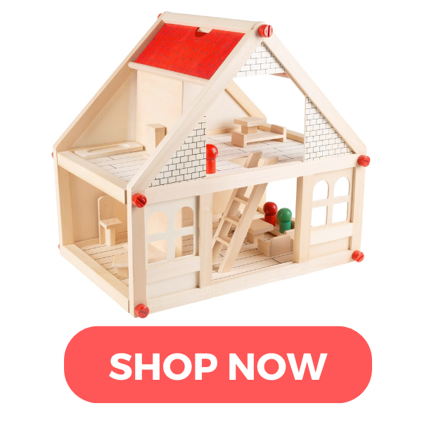 We like a dollhouse like this one with a simple design that doesn’t take up too much space. The open sides make it easy for multiple kids to play simultaneously, and the basic design lets your child’s imagination do the hard work. We also love a dollhouse like this one that can double as a bookcase or display shelf as kids grow.