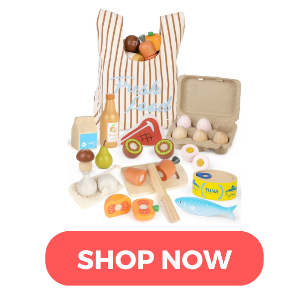 It’s all too easy to go overboard in the play food department, but a few quality pieces can go a long way! Find a set like this one with a bit of variety and let imagination do the hard work.