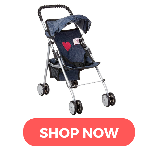 A stroller like this one is not just for dolls! Your little one will love pushing it around the house with every stuffy they own. I especially love that this one has a storage basket on the back and comes in some unique patterns. Too cute!