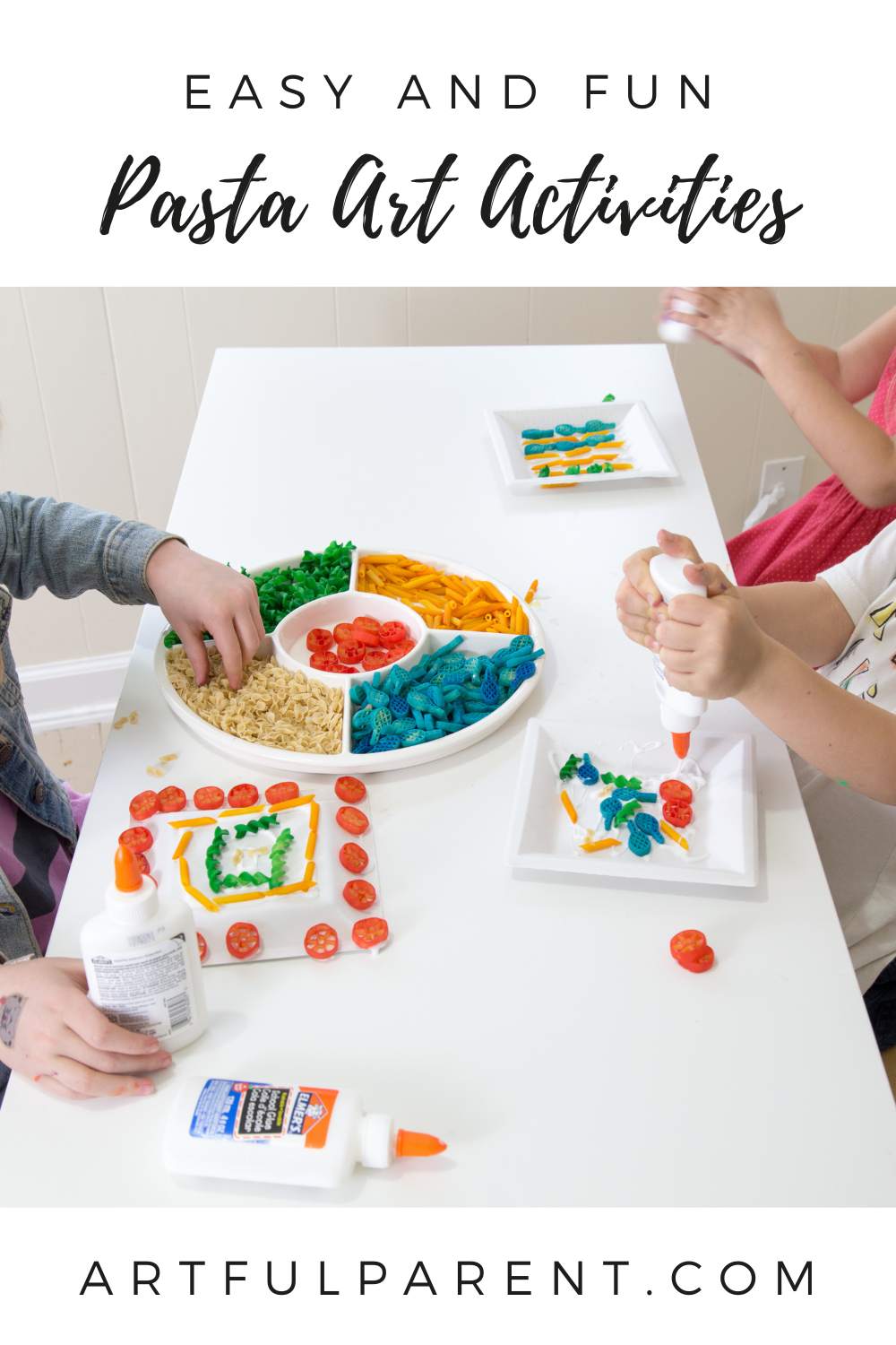 Try these fun pasta art activities for kids using your own dyed pasta and some arts and crafts materials you probably have at home. The possibilities are endless!