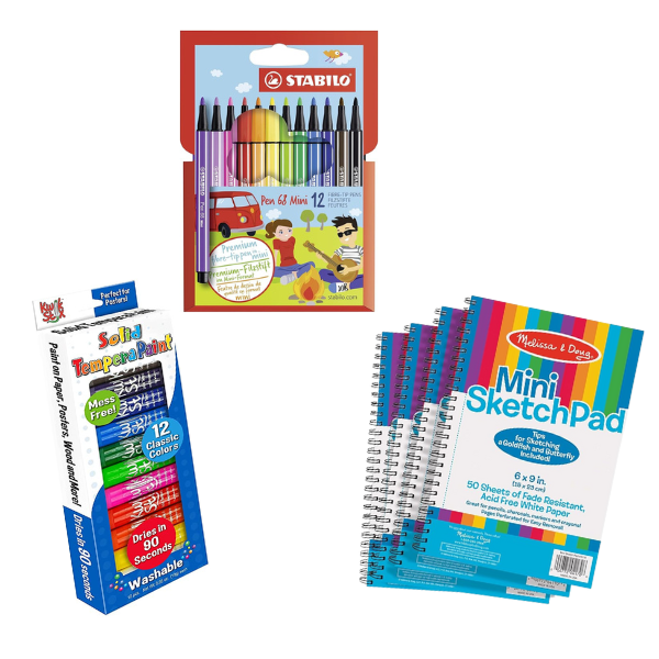 A stocking has to have art supplies! Try 1-3 drawing or art materials, such as a pack of markers or a pack of paint sticks and a small sketchbook.