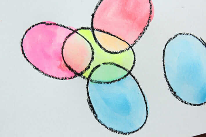 It is fun to create a bubble of one color and when it overlaps another colored bubble to think about what those two colors will make when mixed together.