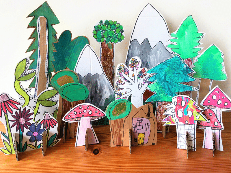 Create an amazing magic forest with this easy cardboard art project for kids. Makes a fun creative play setup for kids. Updated April 2025 Here