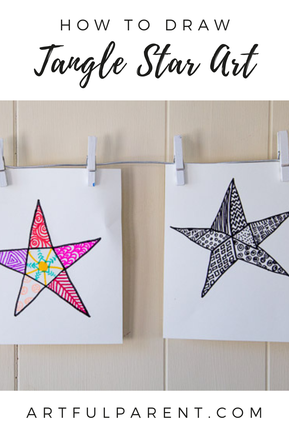 How to draw tangle star art, a fun and easy drawing activity for kids. Plus, a tangle star printable to print and use!