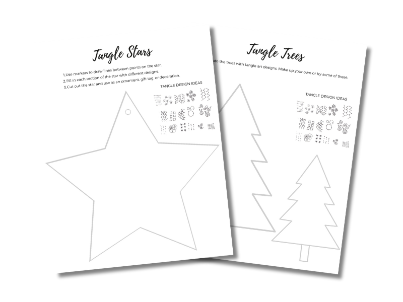Note: we have a tangle star printable for you below that you can print out (on sturdy cardstock) and use to make your own tangle star ornaments.