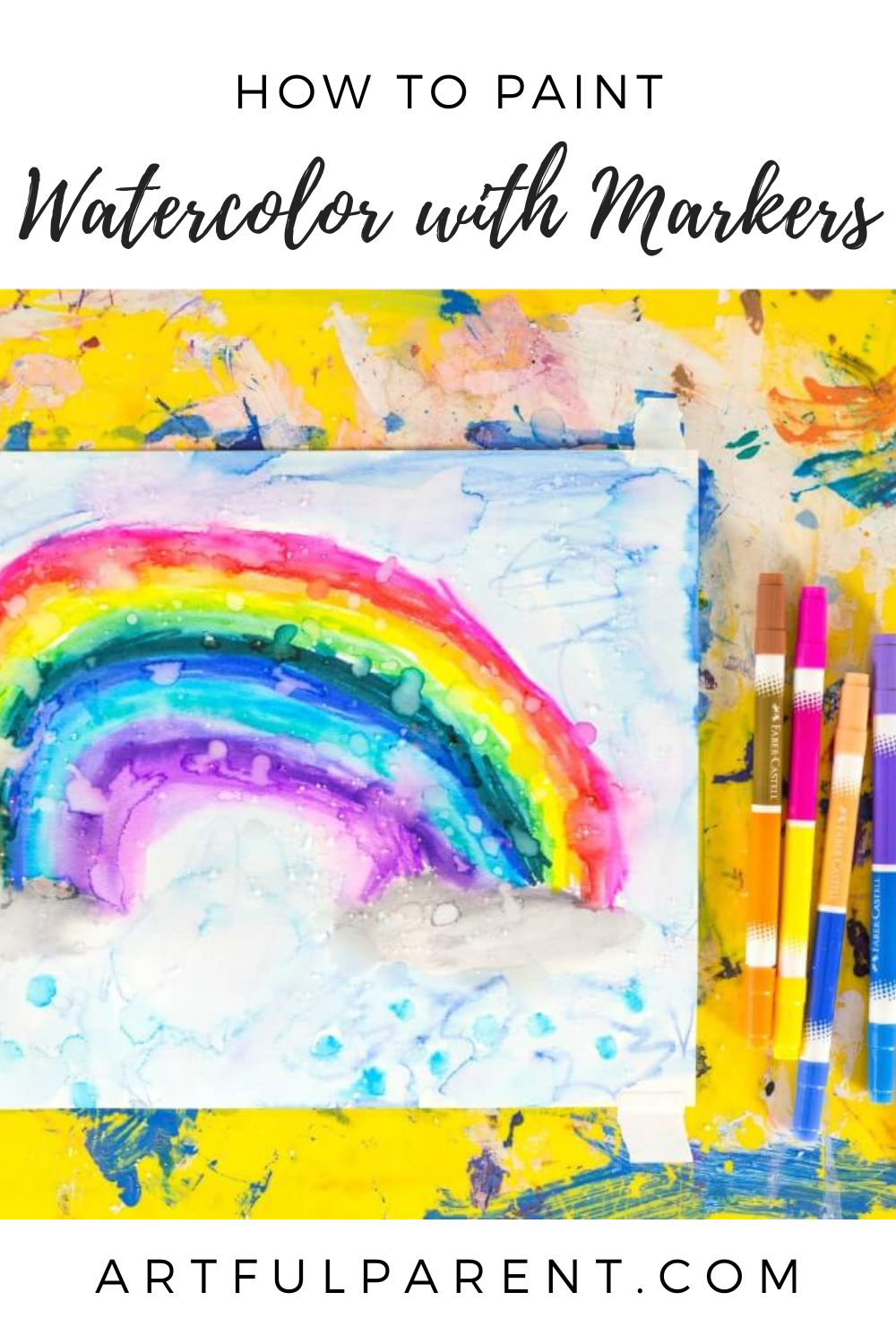Learn how to get a watercolor effect with marker drawings. This watercolor technique is easy and effective for kids of all ages.